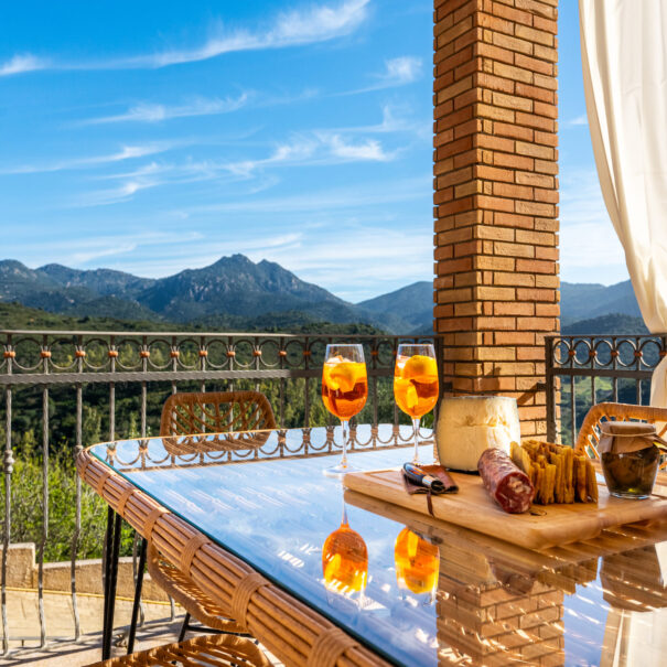 Large terrace overlooking the Mediterranean scrub. Tranquility and peace dominate.