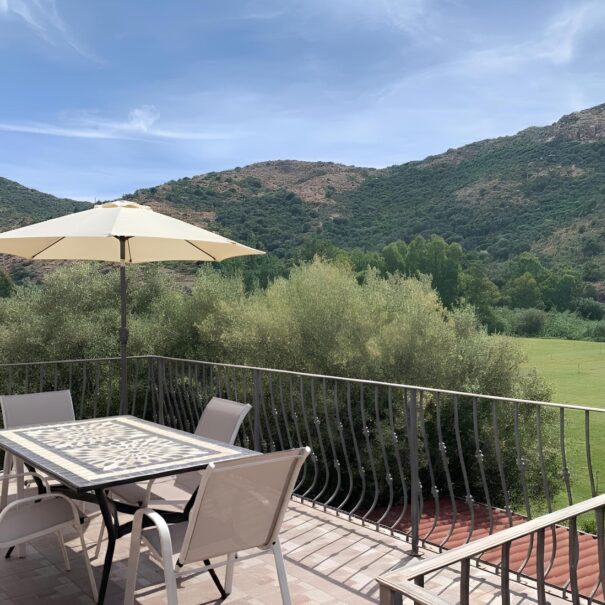 Grande terrasse donnant sur le maquis méditerranéen. Calme et sérénité y règnent en maîtres.