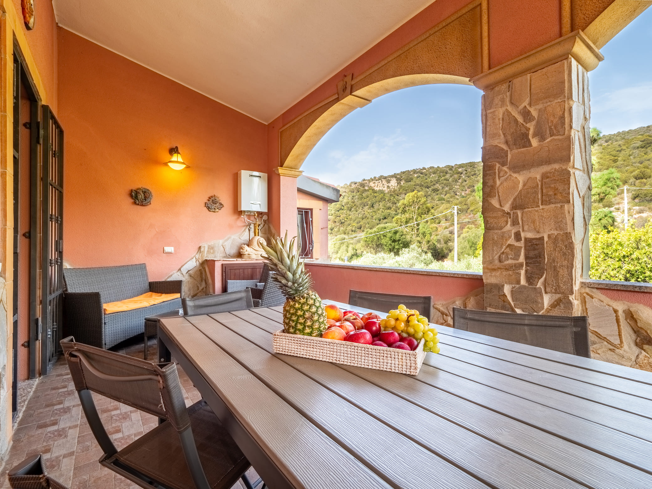 Our house is particularly suitable for groups or families seeking well-located accommodation for quick access to the beautiful beaches of Chia and the area’s amenities. The property is surrounded by a magnificent four-sided courtyard with views of the magnificent green hills of Chia. The apartment is entirely on the first floor and is accessible via an easily usable flight of stairs. The living room, complete with a sofa and dining table, features an equipped kitchenette for comfortably preparing your meals at home. The sleeping area consists of: a double bedroom and a triple bedroom (3 single beds). The complete bathroom is also equipped with a washing machine. In the courtyard, where both the barbecue and the outdoor shower are available, you can comfortably park one or two vehicles for free. Access and spaces: guests enjoy exclusive use of the apartment and the covered veranda. The only spaces shared with another apartment, also owned by us, are: the parking area and the ground floor access courtyard where the outdoor shower and barbecue are located. A large lawn facing the structure is available to all guests for walking or exercising.
