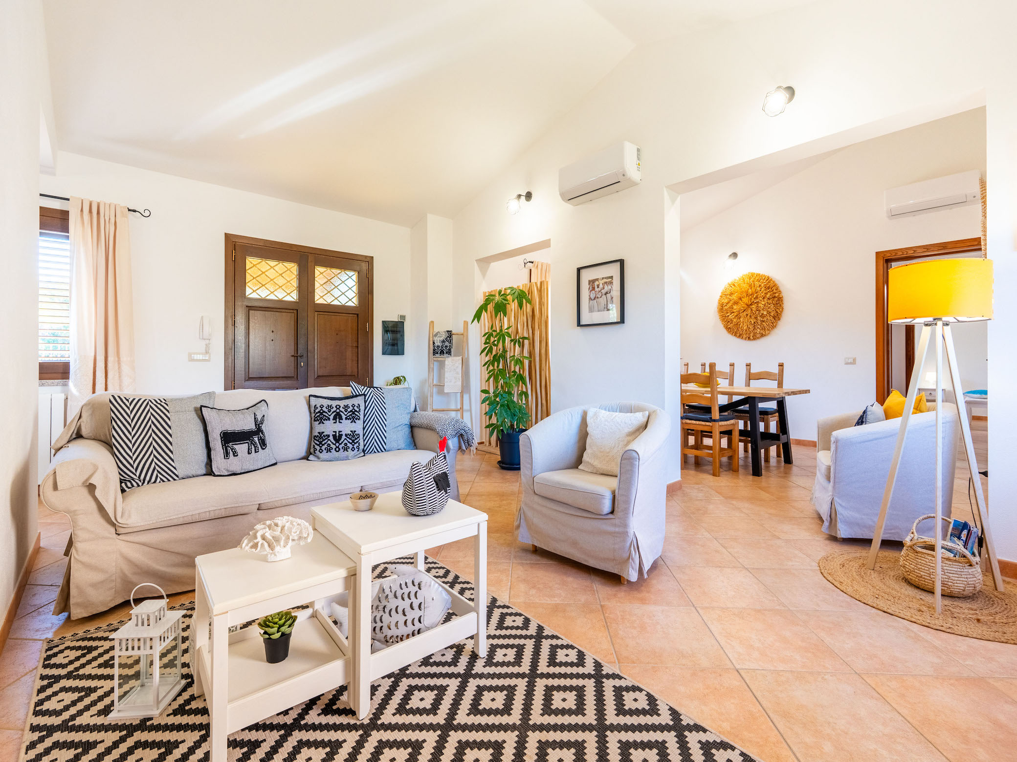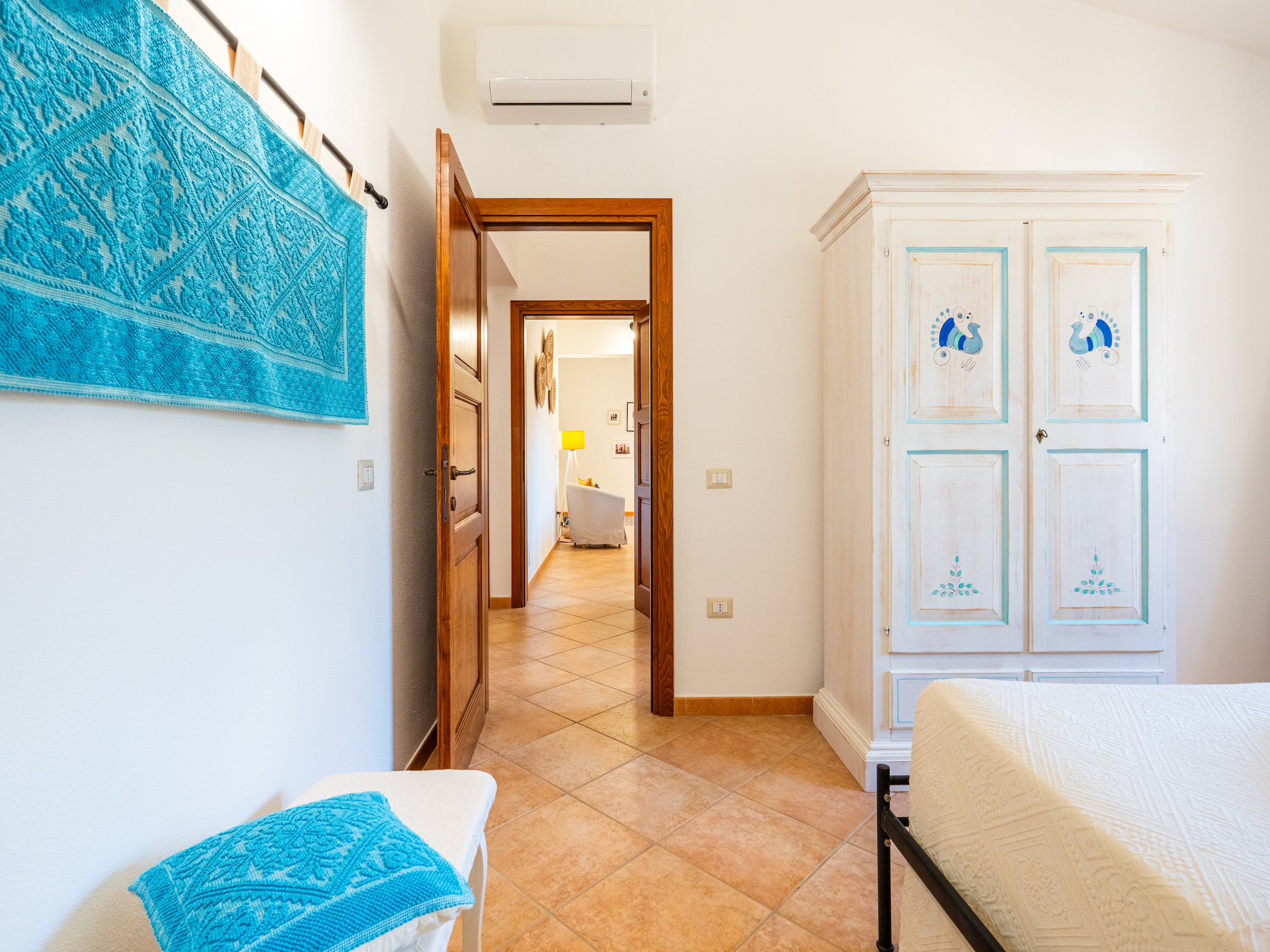 Welcome to “La Pavoncella” a charming apartment located on the first floor of a detached villa in Domus de Maria. Here, our vision of hospitality translates into a constant dialogue between the comfort of modern design and the profound essence of Sardinian craftsmanship. With three spacious bedrooms and two full bathrooms, the home is designed to offer space and privacy to families or groups seeking an authentic experience just a short distance from the magnificent beaches of Chia.