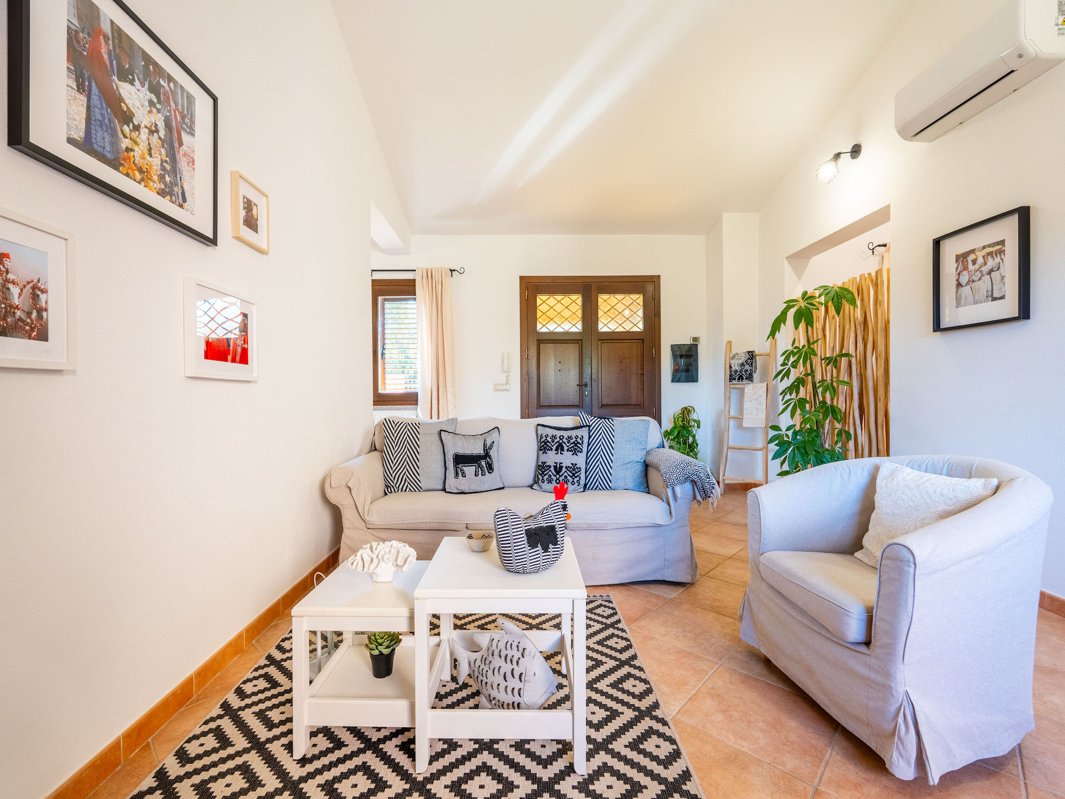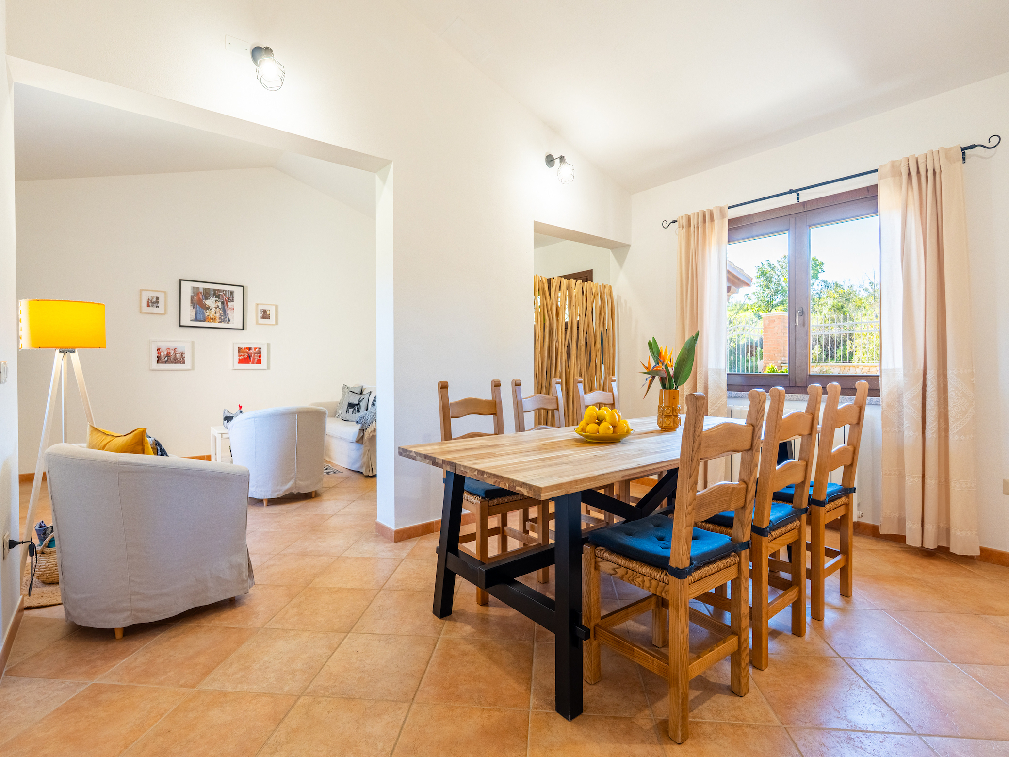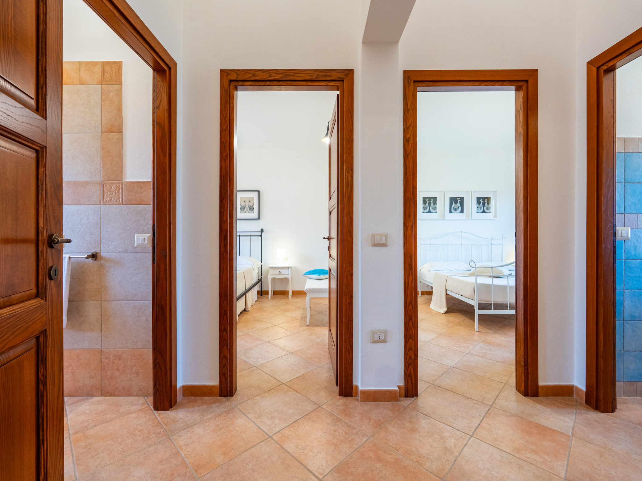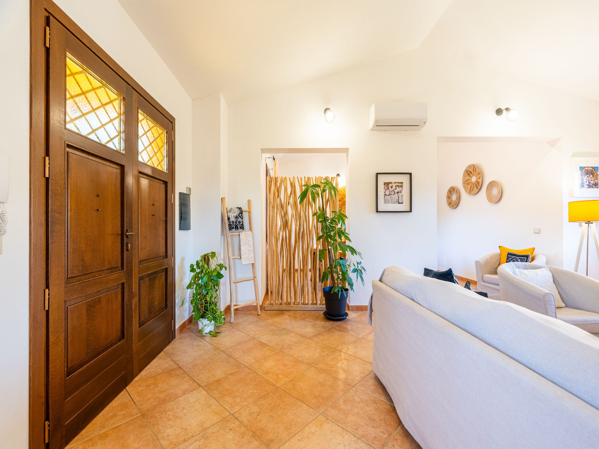 Located on the first floor of a detached villa in Domus de Maria, “La Pavoncella” reflects our vision of hospitality: a harmonious blend of the functionality of modern design and the charm of Sardinian craftsmanship. Access to the property is simple and convenient: beyond the gate, a paved driveway leads to the large courtyard where free parking is always available. The three bedrooms offer a warm and authentic atmosphere, while the living room is enhanced by a large panoramic window that transforms the surrounding countryside into a natural setting. The house is fully air-conditioned and equipped with fast Wi-Fi and a Smart TV. The fully equipped, separate kitchen opens onto the panoramic covered terrace. It is here, amidst carefully curated outdoor furniture, that life moves outdoors. From the veranda, your gaze is captivated by an endless horizon; an irresistible invitation to be enveloped by the living power of the landscape. The name “Le Pavoncelle” is inspired by our artistic tradition: a symbol of local authenticity that we hope you will appreciate while staying with us. Access to the property is via a remote-controlled automatic gate. A short paved driveway leads to the villa’s spacious internal courtyard, where you can park for free. The villa houses two independent apartments: to ensure everyone has a rejuvenating stay, we ask our guests to respect the peace and quiet of their neighbors.