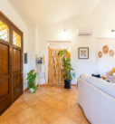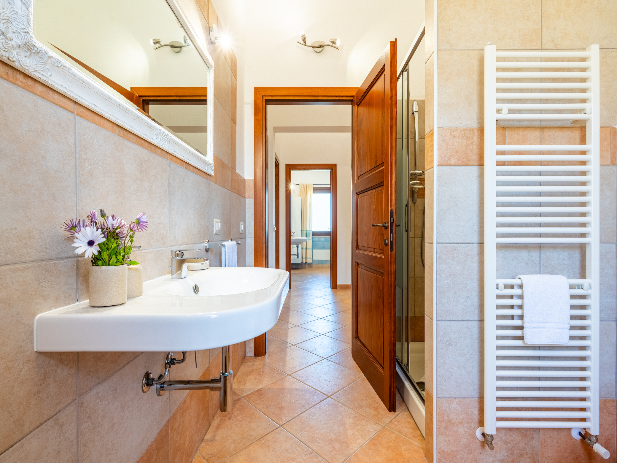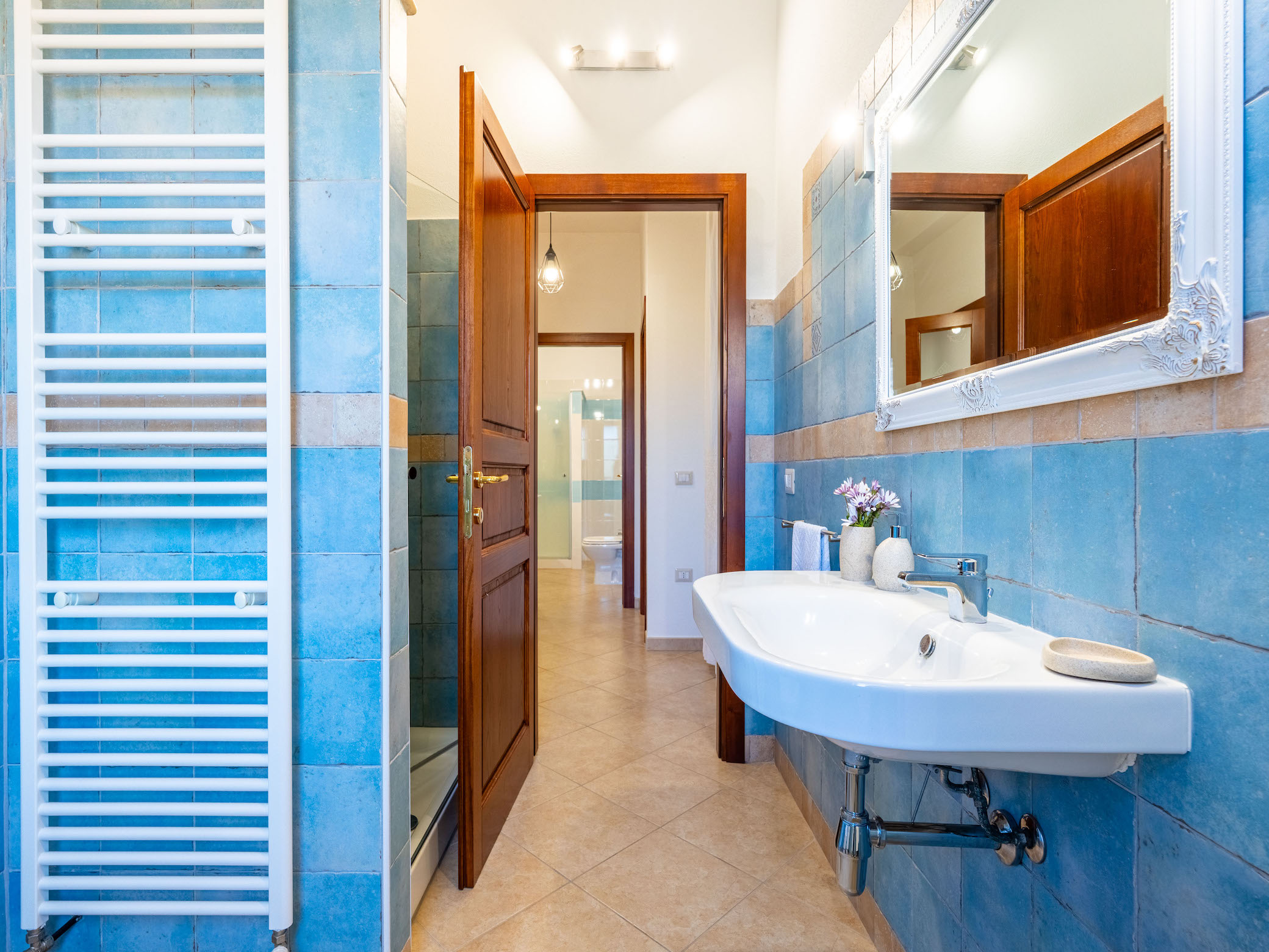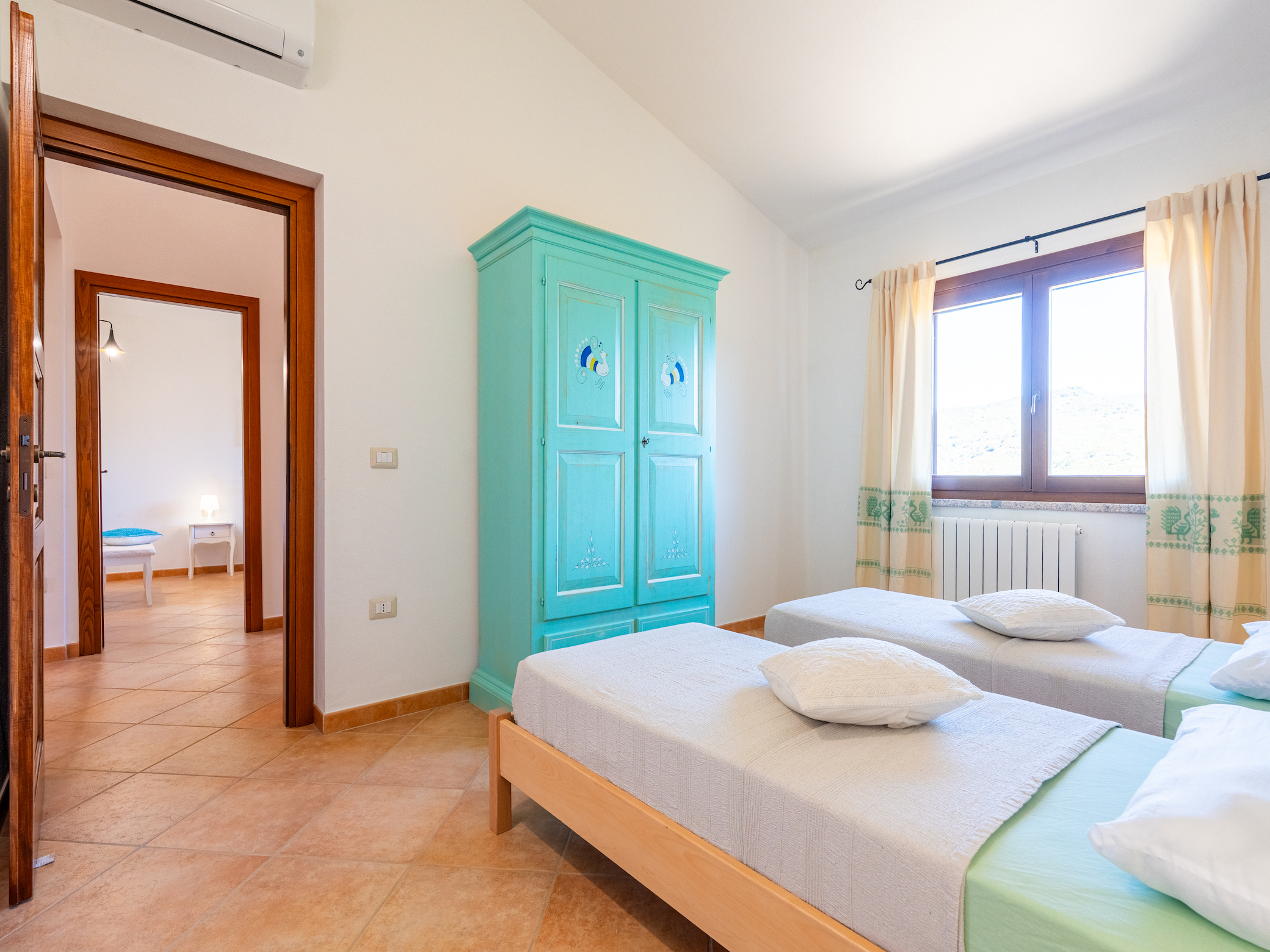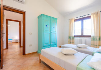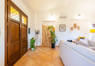 Located on the first floor of a detached villa in Domus de Maria, “La Pavoncella” reflects our vision of hospitality: a harmonious blend of the functionality of modern design and the charm of Sardinian craftsmanship. Access to the property is simple and convenient: beyond the gate, a paved driveway leads to the large courtyard where free parking is always available. The three bedrooms offer a warm and authentic atmosphere, while the living room is enhanced by a large panoramic window that transforms the surrounding countryside into a natural setting. The house is fully air-conditioned and equipped with fast Wi-Fi and a Smart TV. The fully equipped, separate kitchen opens onto the panoramic covered terrace. It is here, amidst carefully curated outdoor furniture, that life moves outdoors. From the veranda, your gaze is captivated by an endless horizon; an irresistible invitation to be enveloped by the living power of the landscape. The name “Le Pavoncelle” is inspired by our artistic tradition: a symbol of local authenticity that we hope you will appreciate while staying with us. Access to the property is via a remote-controlled automatic gate. A short paved driveway leads to the villa’s spacious internal courtyard, where you can park for free. The villa houses two independent apartments: to ensure everyone has a rejuvenating stay, we ask our guests to respect the peace and quiet of their neighbors.