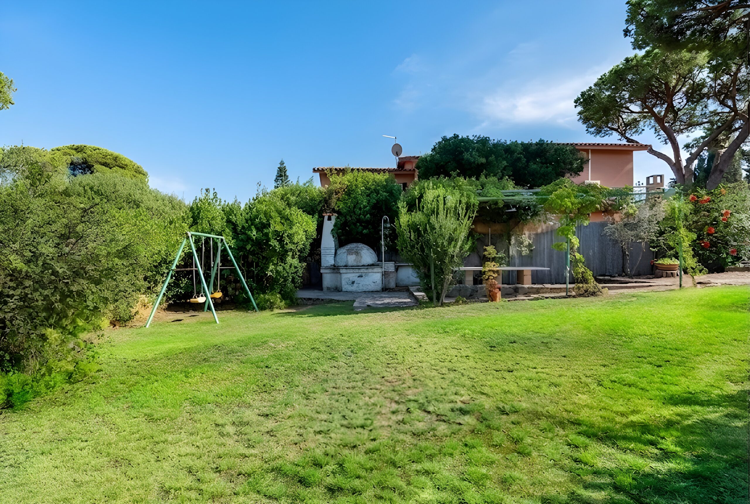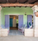 La villa internamente dispone di un ampio soggiorno con Tv e Free Wi-Fi illimitato, una cucina super moderna e accessoriata, tre camere da letto, due bagni completi e ospita fino a 6 adulti. La climatizzazione canalizzata o attraverso Split è disponibile sia in soggiorno che nelle camere da letto: • camera con letto doppio • camera con due letti singoli • camera con letto doppio. Il primo bagno completo ristrutturato è rifinito con materiali di alta qualità e dotato di doccia ultra large. Invece il secondo bagno completo e il bagnetto di servizio, dove è presente la lavatrice, non sono ristrutturati. La terrazza coperta è presente sia sul lato cucina con un comodo tavolo, che sul lato soggiorno, dove gli arredi da giardino permettono il relax all’aria aperta. La proprietà, gode di due accessi indipendenti ed è circondata dal cortile sui quattro lati. Posto auto all’interno del cortile per 3 veicoli.